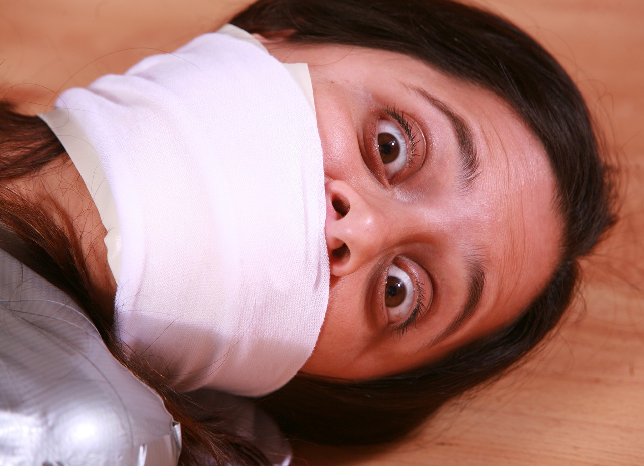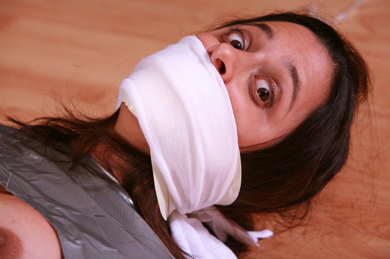 Jamie instructs the goon where to get her cash, jewelry and valuables she goes on to mention that she won’t be a threat to his get-away, she once saw in the movies where a girl got robbed and they tied her up and gagged her, and that is what you can do to me Jamie says over and over again instructing how if she was mummified with her mouth packed full and tightly wrapped she would be toe-tally fucked and unable to move or make a sound!