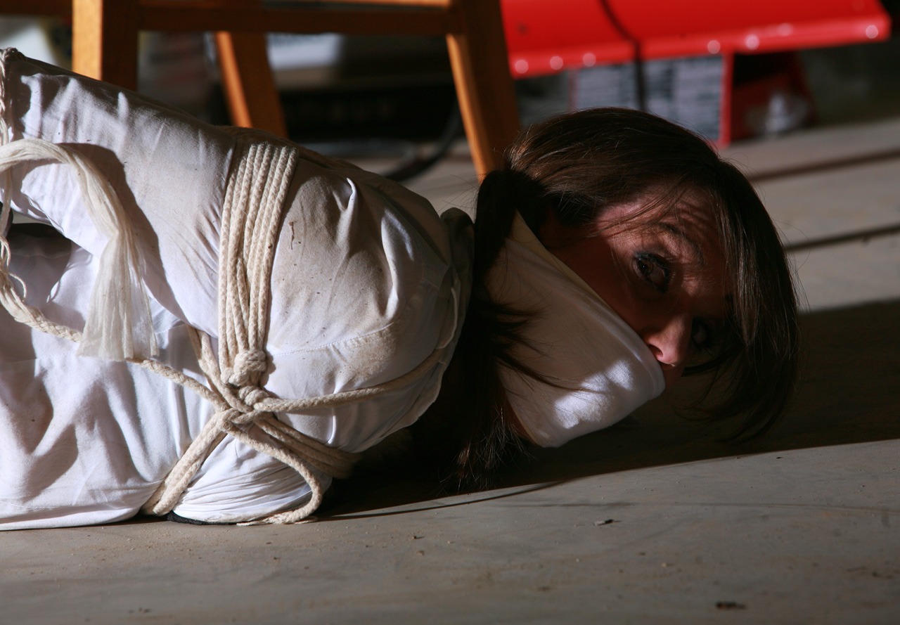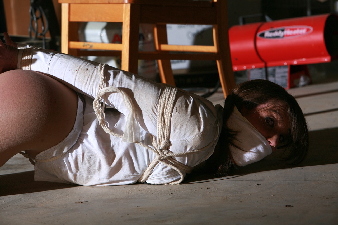 You will see Lizz squirming hard in a tight Hogtie wearing her Sexy Platino Pantyhose in a dirty, creepy basement squirming all over looking for any way to get unbound and ungagged in this fast paced, action packed Storyline Video.