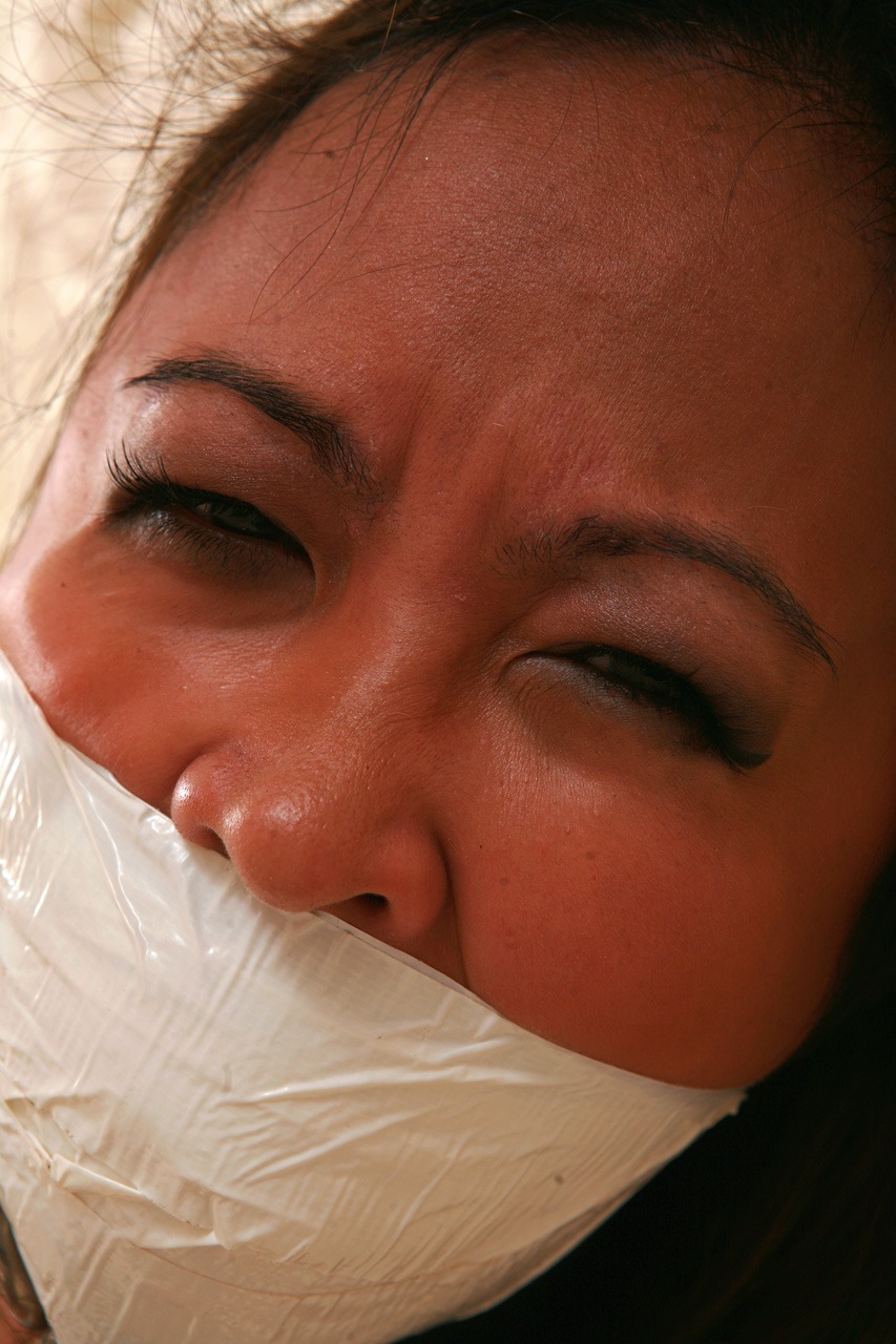Gorgeous local Filipino College Girl Veronica thinks it is “Visually Appealing” to see a pretty woman massively and tightly bound and gagged, the longer the better, however, when she is the victim of an Unwelcome House Guest who breaks into her home and needs a place to hide for several hours she soon finds out what its like to be heavily bound up with thin nylon Parachute cord, mouth fully packed and massively wrapped in with duct tape, then tethered to her own bed with a collar around her neck that is tied off to one end of the bed and her feet to the other, her hands and fingers are taped up for added measure to insure there is no way possible she can do anything and the soles of her sweaty, stinky pantyhose clad feet are also tightly bound making and leaving her toe-tally fucked and completely helpless.