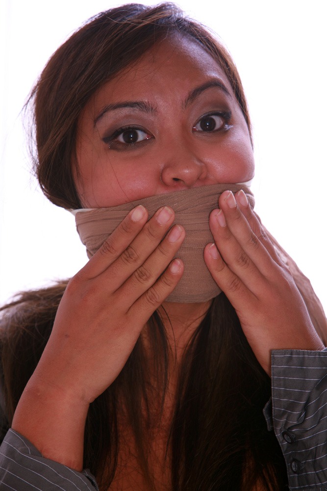 The Goon still not realizing she is the lead College Reporter for KGAG out of Roper City who is out to bring him down but instead ends up tightly bound, triple gagged, frustrated and squirming for Freedom! This is a very fast paced, action packed scene with Gorgeous Veronica heavily bound up wearing Sexy Pantyhose and a Business Suit squirming like you have never seen before!